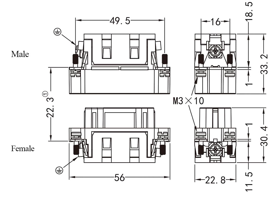 HA-010-MC HA-010-FC Male and Female 16A 250 10+PE Crimp Contact Connector