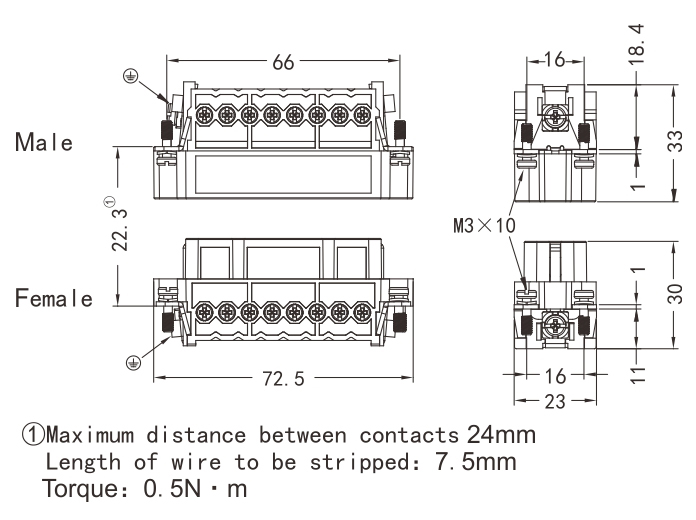 Home|Heavy Duty Connector (Rectangle)|Inserts|HA Series|HA-032-MB HA-032-FB Male and Female 16A 250 32+PE Screw Contact Connector