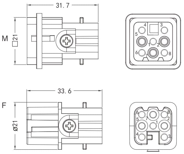 HD-008-MC/FC Crimp termination Connector 16A 500V 8+PE