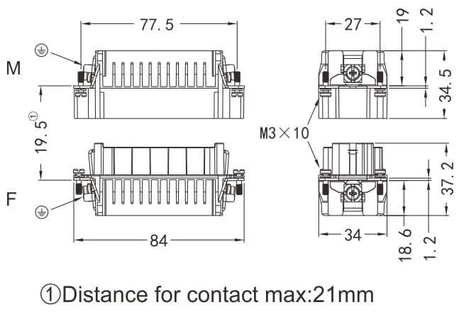 HD-040-MC/FC Crimp termination Connector 16A 500V 40+PE