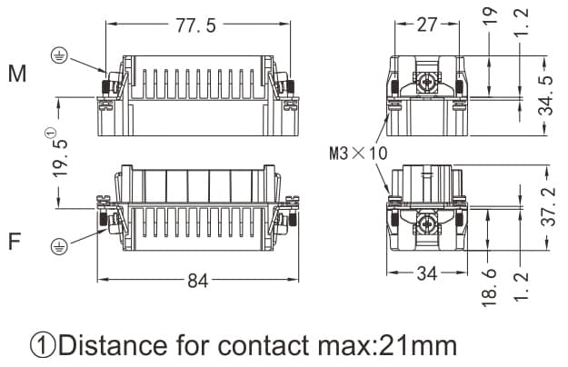 HD-080-MC/FC Crimp termination Connector 16A 500V 80+PE