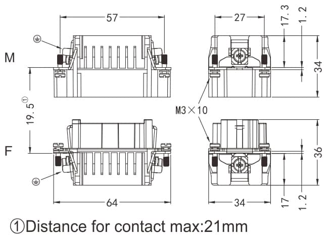 HDD-042-MC/FC Crimp termination Connector 16A 500V 42+PE