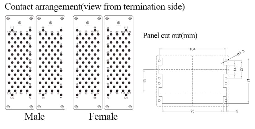 HEEE-128-MC/FC Crimp termination Connector 16A 500V 128+PE
