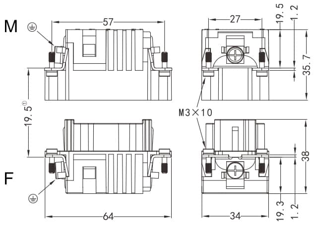 HK-012/2-M/F Crimp termination Connector 40A 690V 12+PE +2 Signal pin 10A 160V