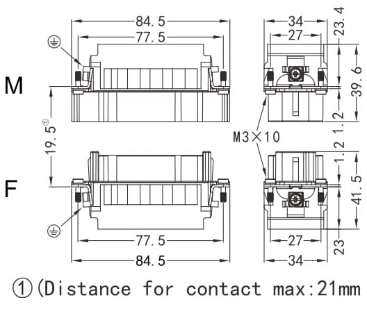 HK-012/2-M/F Crimp termination Connector 40A 690V 12+PE +2 Signal pin 10A 160V
