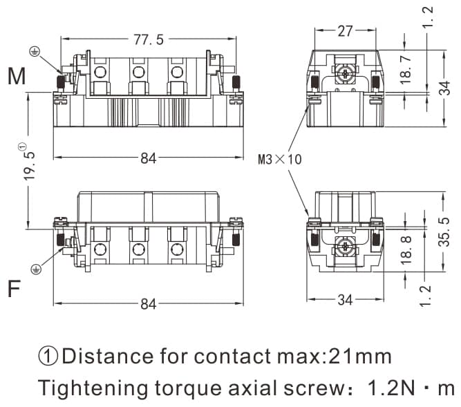 HSB-006-M/F Screw termination Connector 16A 500V 6+PE