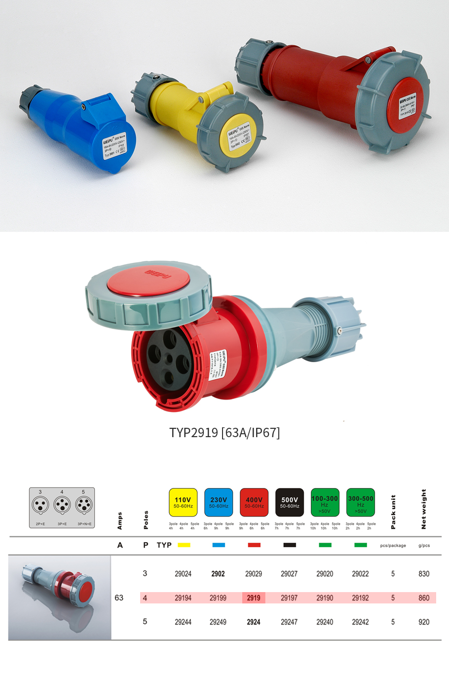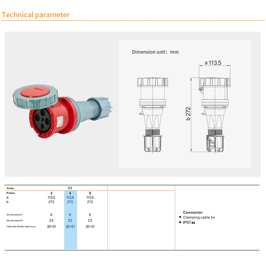 63A 4PIN Clamping cable fix TYP2919-IP67