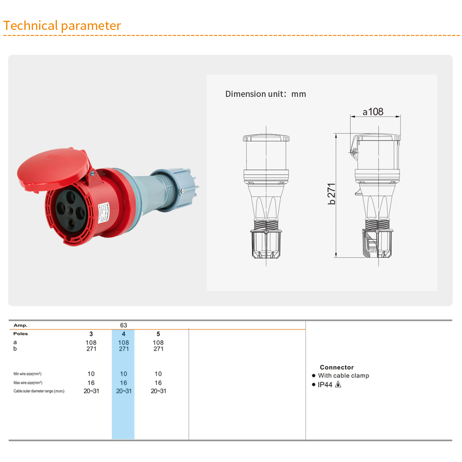 400Amp Female-contact plug WH400A-TK-L3 IP67