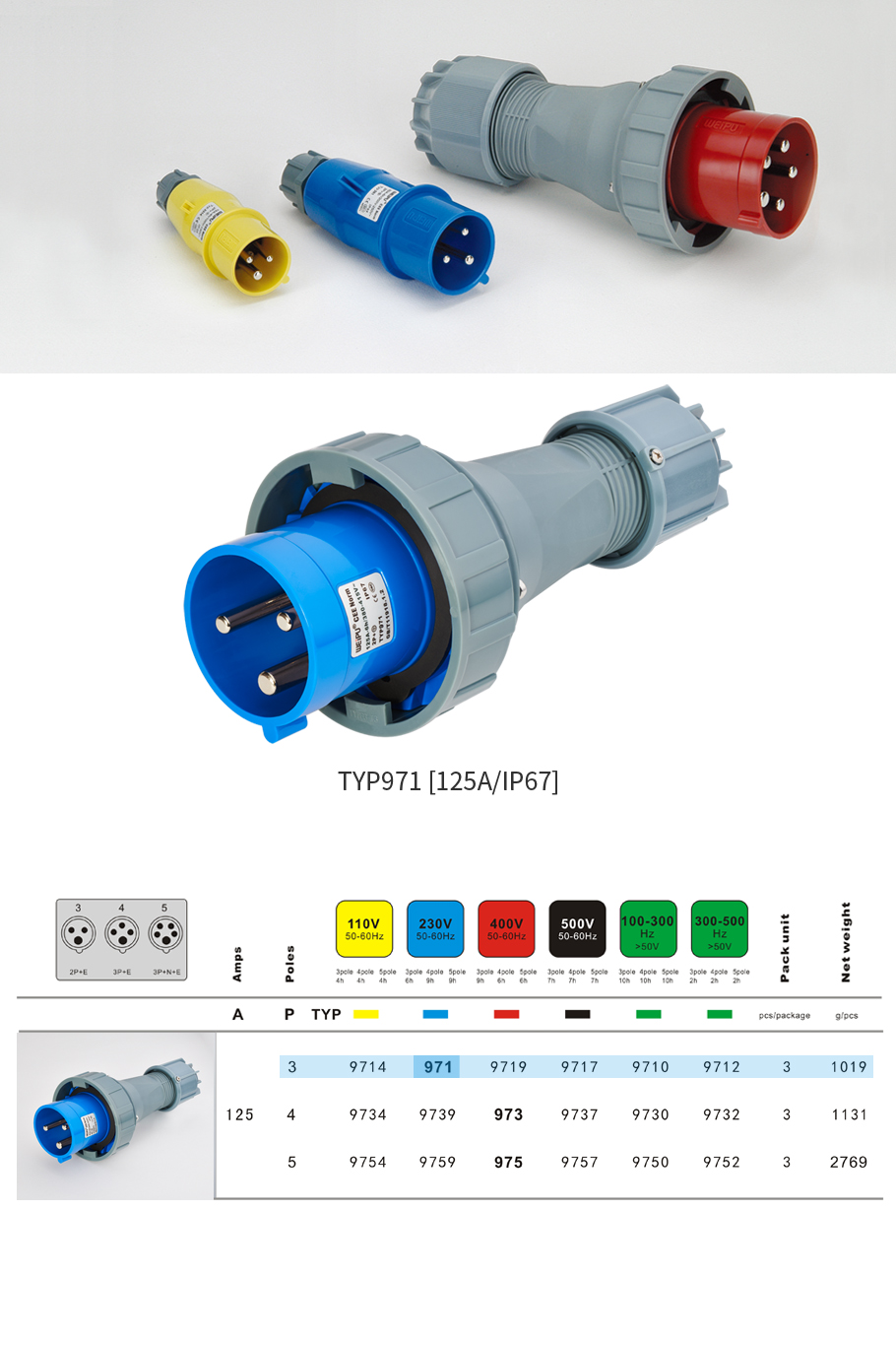125A 3PIN Plug Clamping cable fix TYP971-IP67
