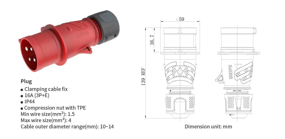 - Durability and Robust Construction: The TYP plug is constructed from high-quality, corrosion-resistant materials, making it suitable for both indoor and outdoor applications. Its rugged design ensures long-lasting performance, reducing the need for frequent replacements.