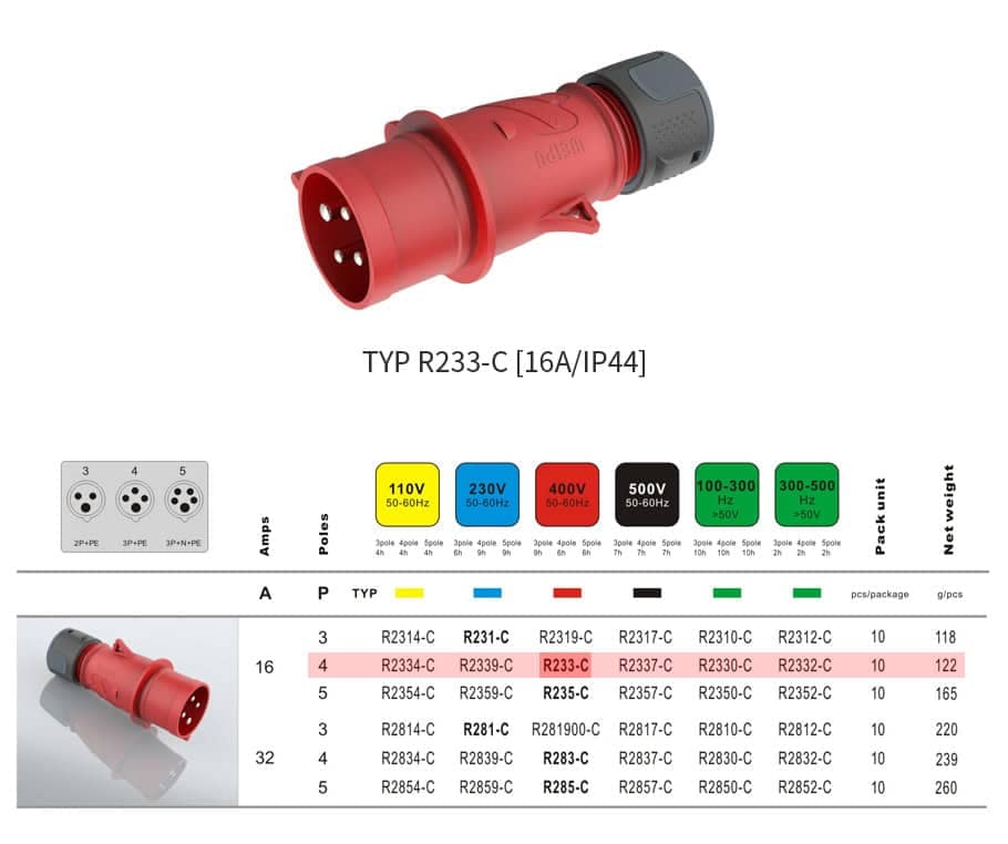 - Safe and Secure Connections: Featuring a reliable locking mechanism, the TYP plug ensures secure connections with minimal risk of accidental disconnection, enhancing safety in industrial settings.