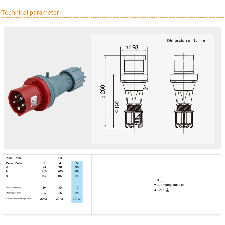 Whether basic dust and water protection or full waterproofing in extreme conditions is required, the TYP series delivers reliable solutions. These plugs are designed to maintain excellent electrical connection performance in harsh industrial settings, making them suitable for heavy machinery, construction sites, marine environments, and renewable energy systems.