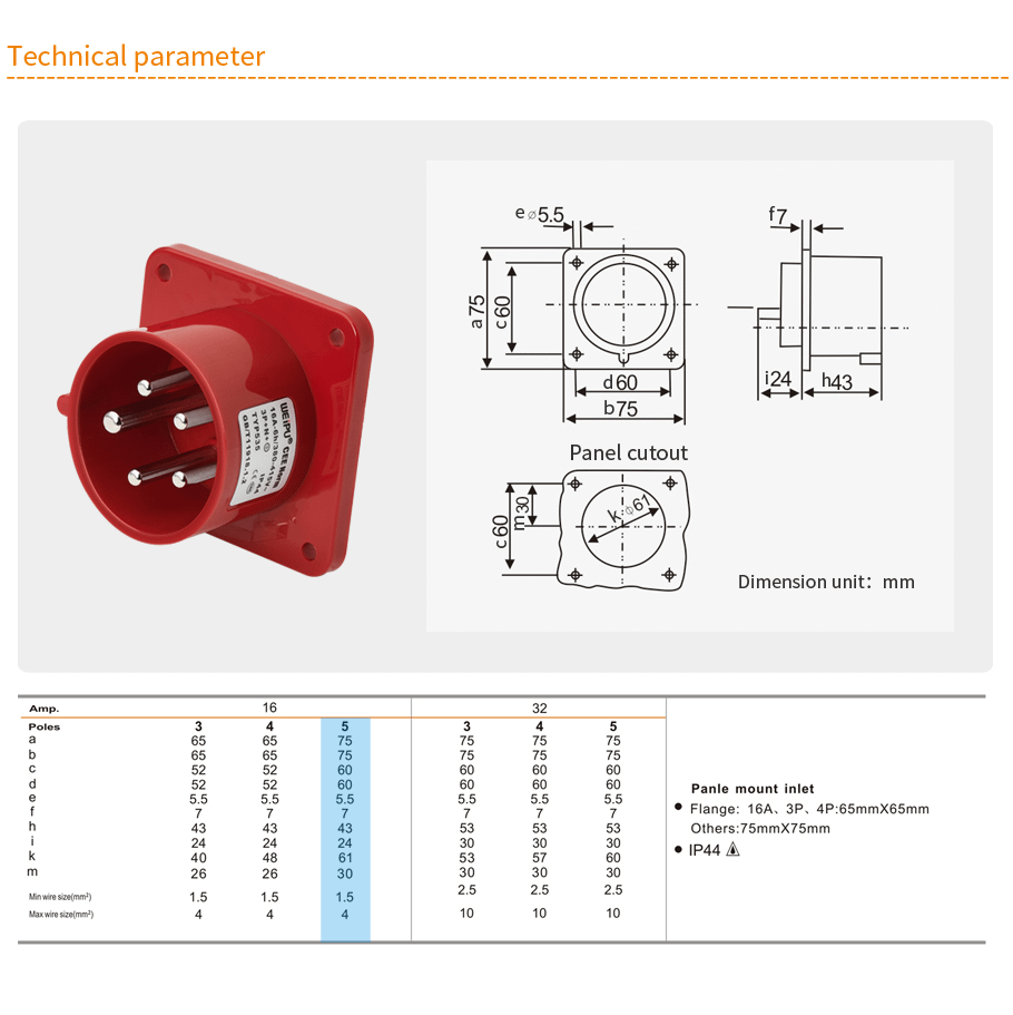 | ◆ Flange:16A,3PIN,4PIN:65mm*65mm |