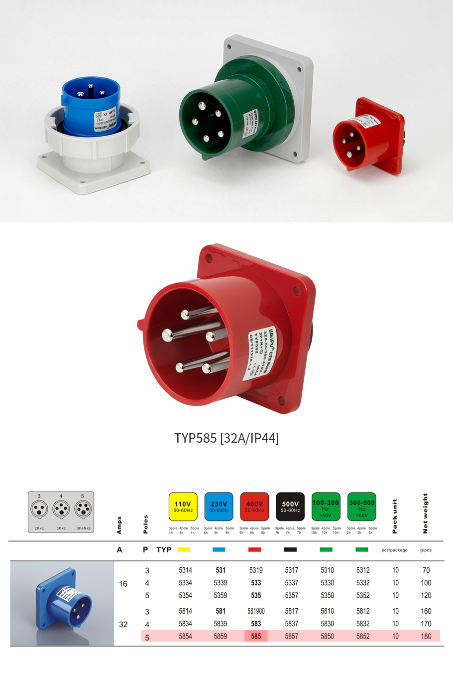 32A 5PIN Panle Mount Inlet TYP585-IP44