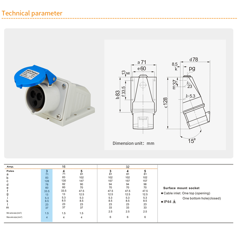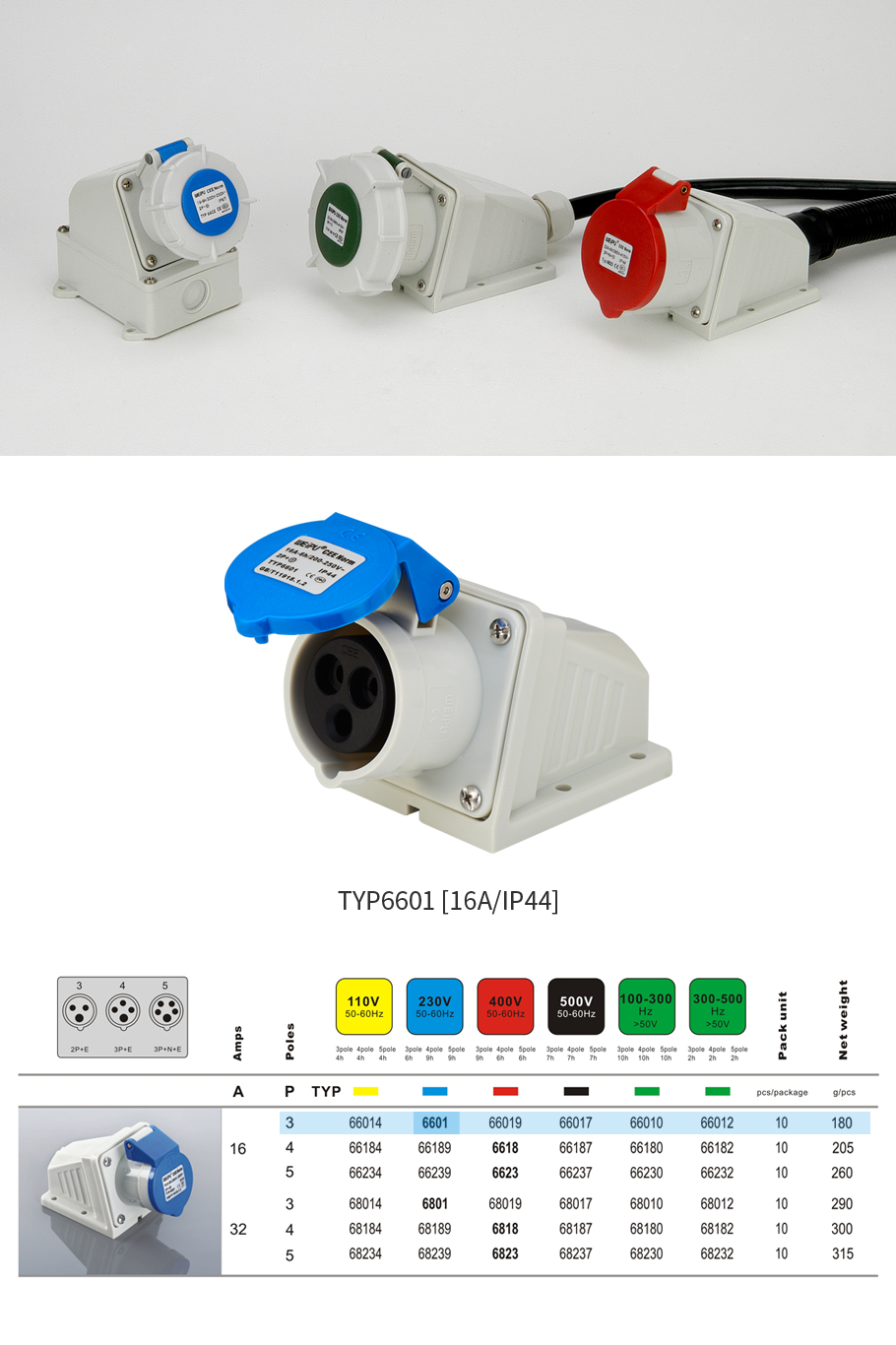 16A 3PIN Surface Mount Socket TYP6601-IP44