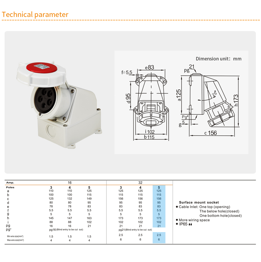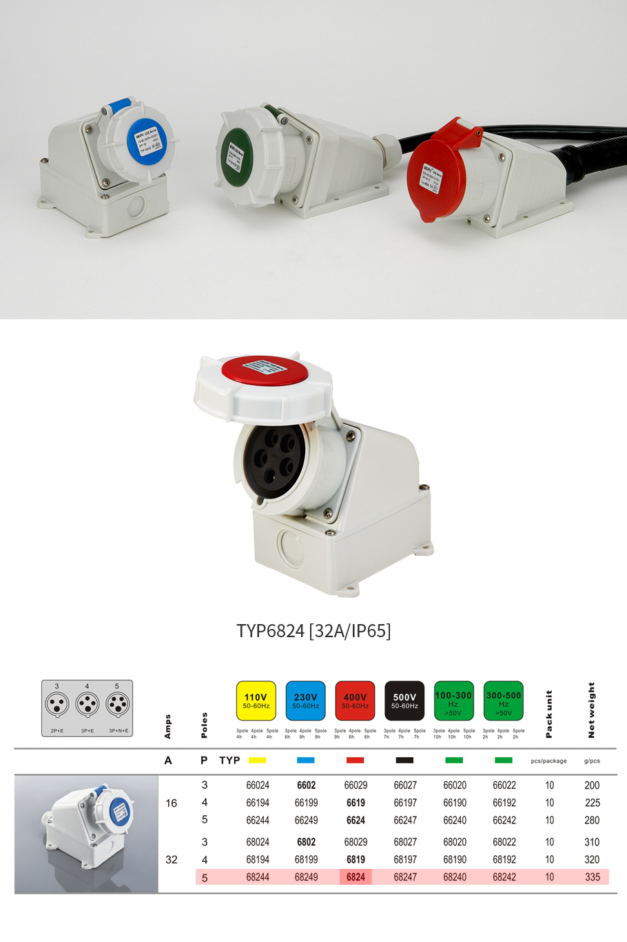 32A 5PIN Surface Mount Socket TYP6824-IP65