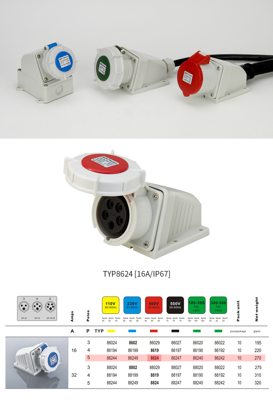 16A 5PIN Surface Mount Socket TYP8624-IP67