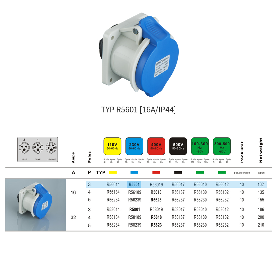16A 3PIN Panel mount socket TYPR5601-IP44