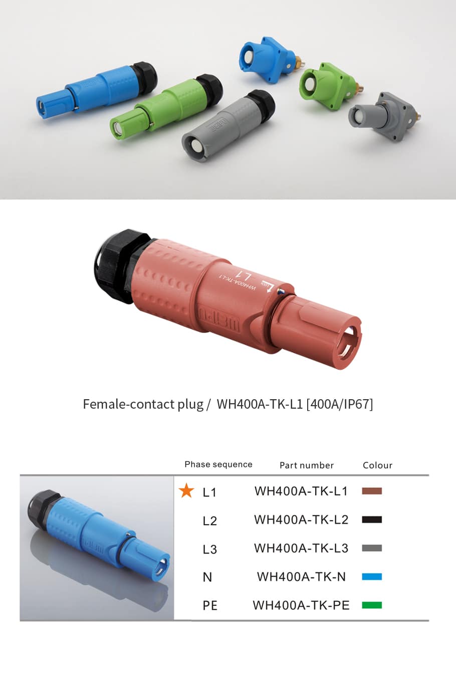 400Amp Female-contact plug WH400A-TK-L1 IP67
