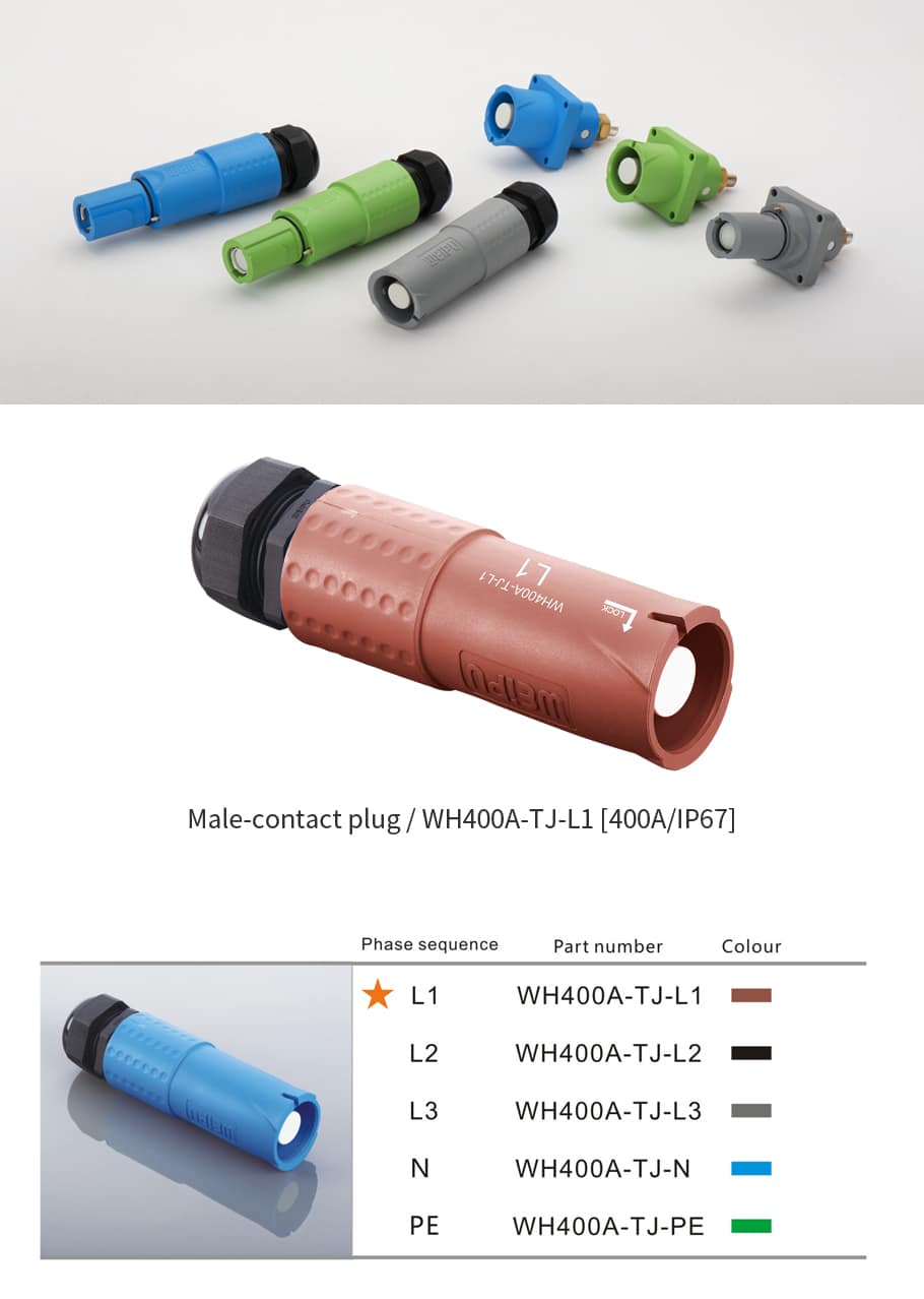 400Amp Male-contact plug WH400A-TJ-L1 IP67