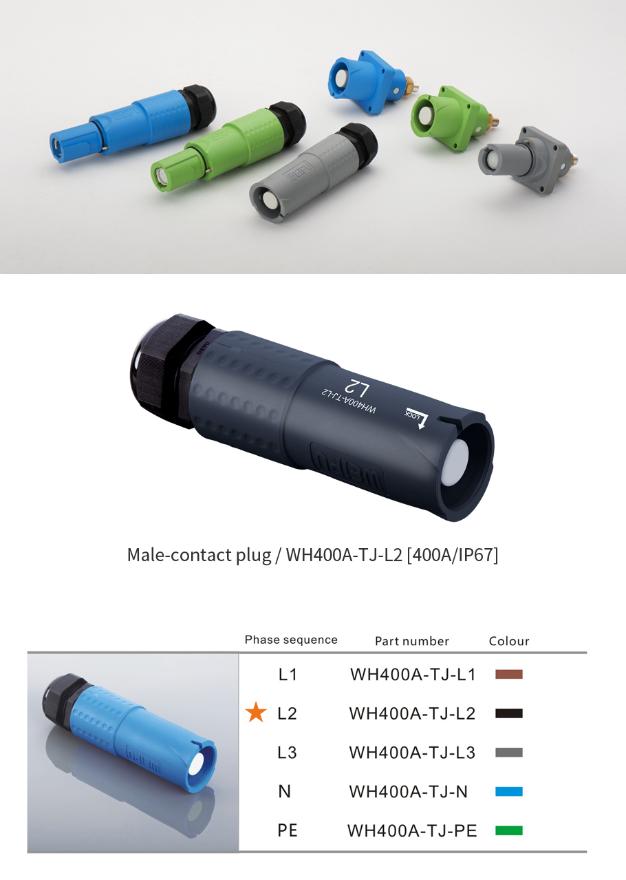 Home|Industrial Connector|WH400A|400Amp Male-contact plug WH400A-TJ-L2 IP67