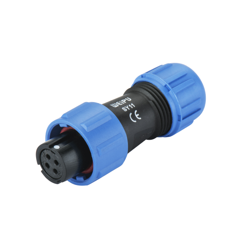 The SY series connectors have an IP68 protection level. The first digit "6" means complete protection against dust intrusion, and the second digit "8" means long-term immersion in water at a specified pressure without water ingress. They are suitable for harsh environments such as outdoor rainy days, underwater short-term work, dusty industrial workshops, and oily and high-vibration construction sites.